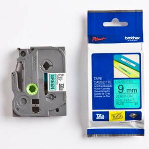 Brother originální páska do tiskárny štítků, Brother, TZE-721, černý tisk/zelený podklad, laminovaná, 8m, 9mm
